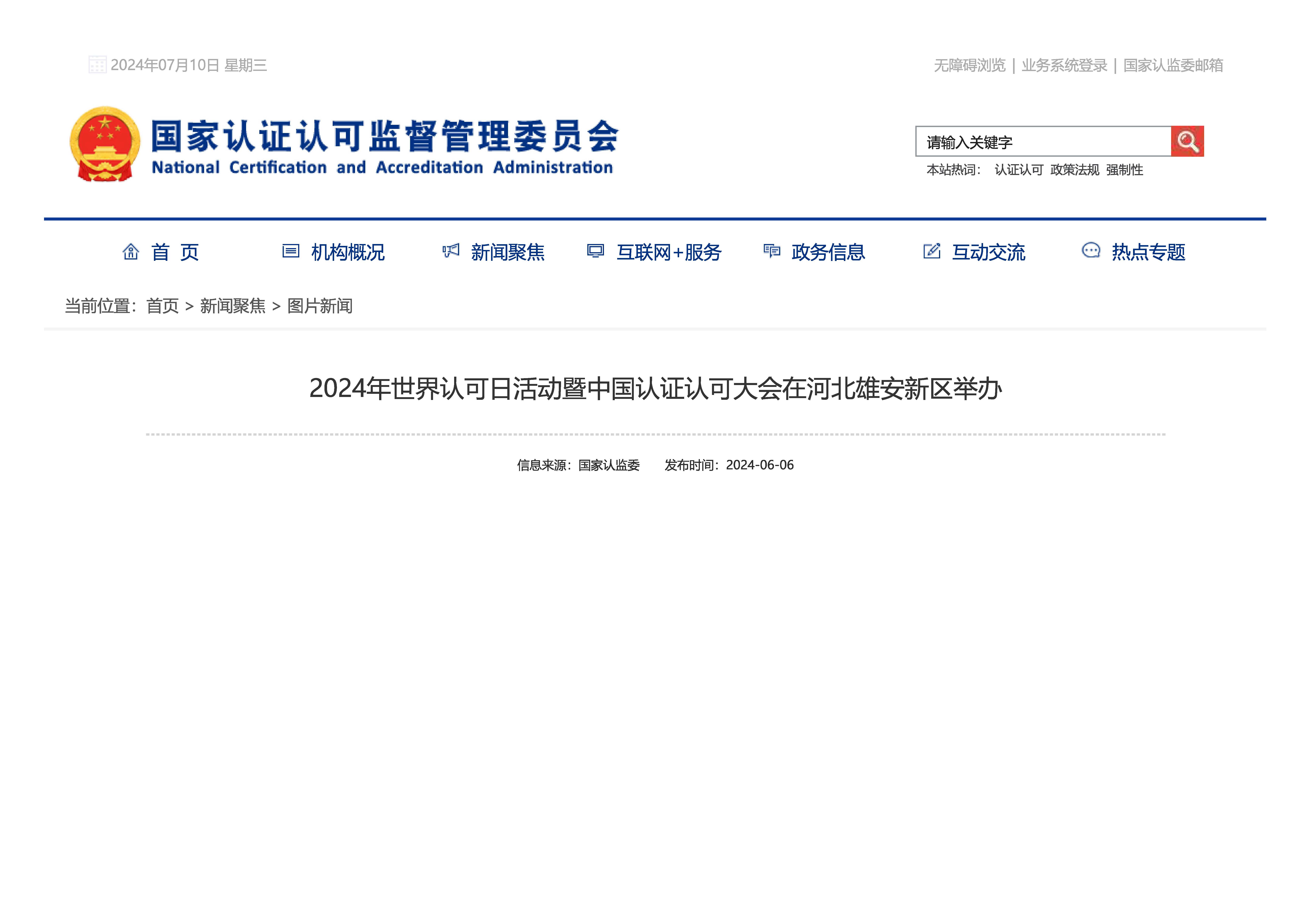 2024年世界認(rèn)可日活動暨中國認(rèn)證認(rèn)可大會在河北雄安新區(qū)舉辦發(fā)表時間:2024年07月15日
